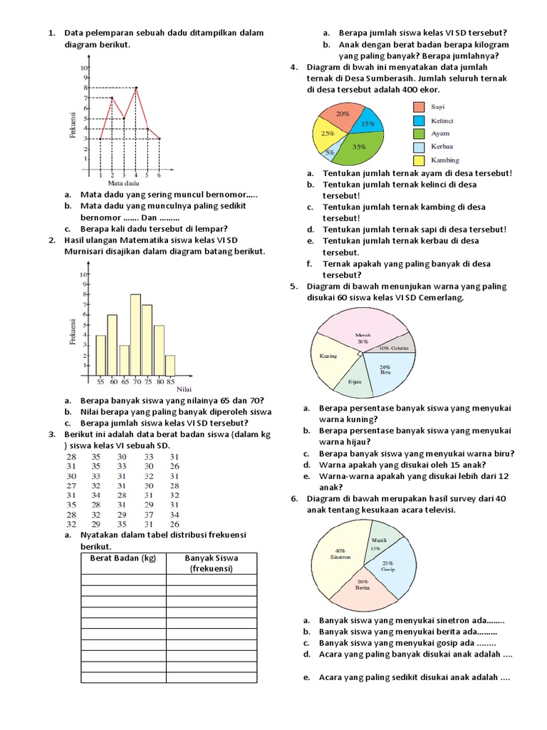 Contoh Soal Pengolahan Data Dan Menyajikan Data Dalam Diagram Batang Semua Halaman Bobo from asset-a.grid.id Soal matematika kelas 6 bab diagram lingkaran. We did not find results for: Check spelling or type a new query. Maybe you would like to learn more about one of these?